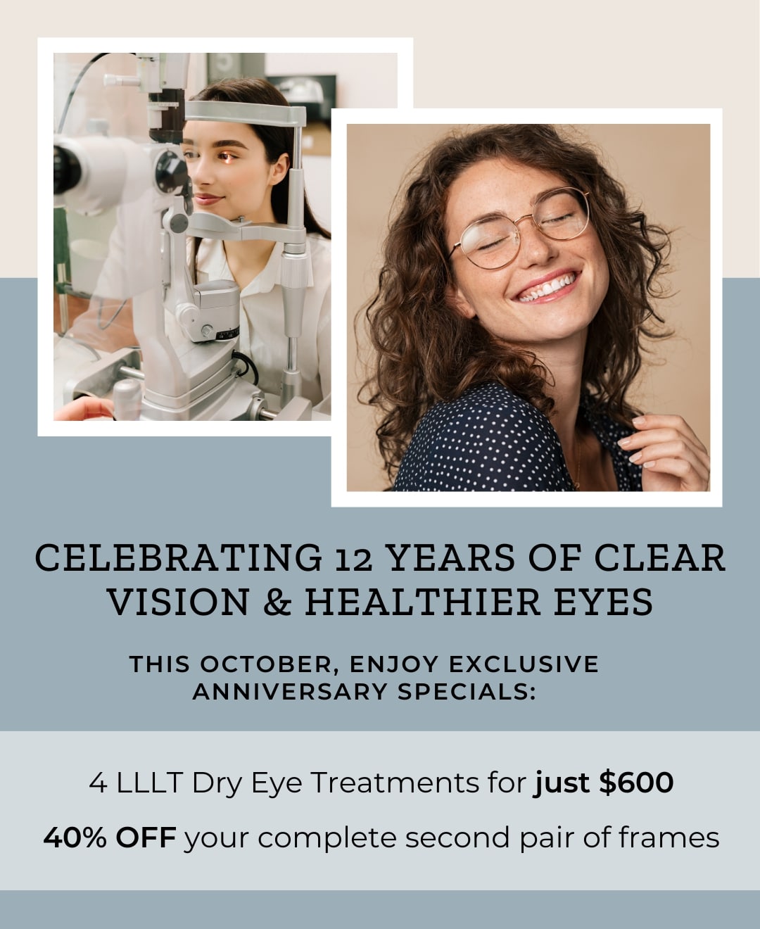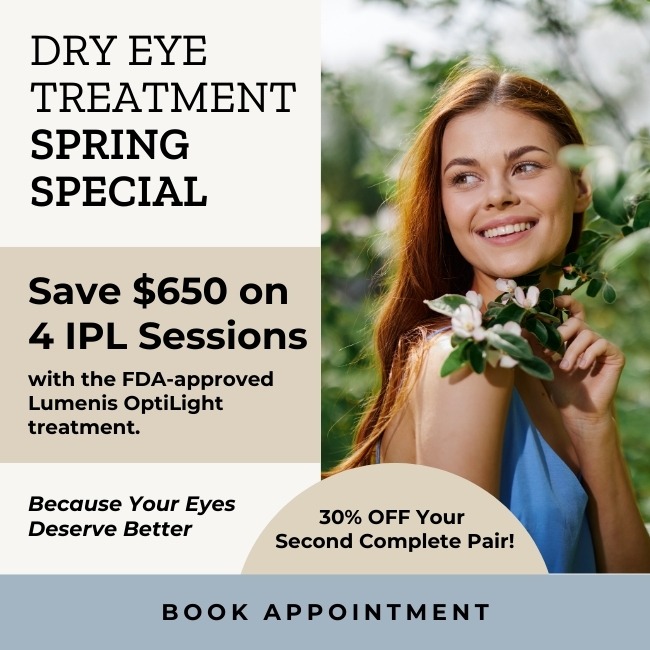 Are you wondering if it’s your glasses or your contacts? Well, we can help. At Lunettes Optometric, we offer modern technology to treat dry eyes, including intense pulsed light (IPL) and radiofrequency (RF). Book your annual eye exam and receive a free dry eye assessment to learn more about your condition and what we can do to bring you the comfort and clarity you deserve.